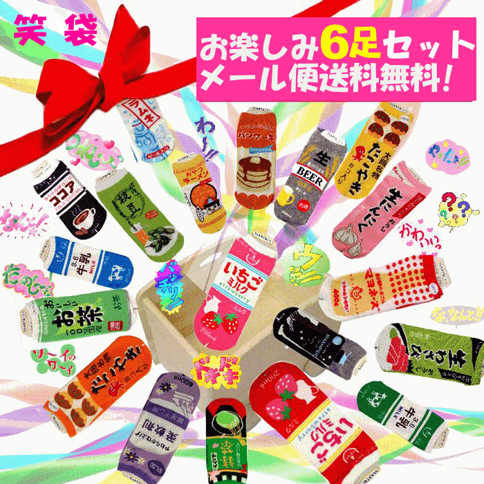 おもしろ雑貨 笑み袋 おもしろソックス6足セット くるぶし丈 かわいいおもしろ靴下 【メール便送料無料】/かわいいお洒落ソックス 福袋/